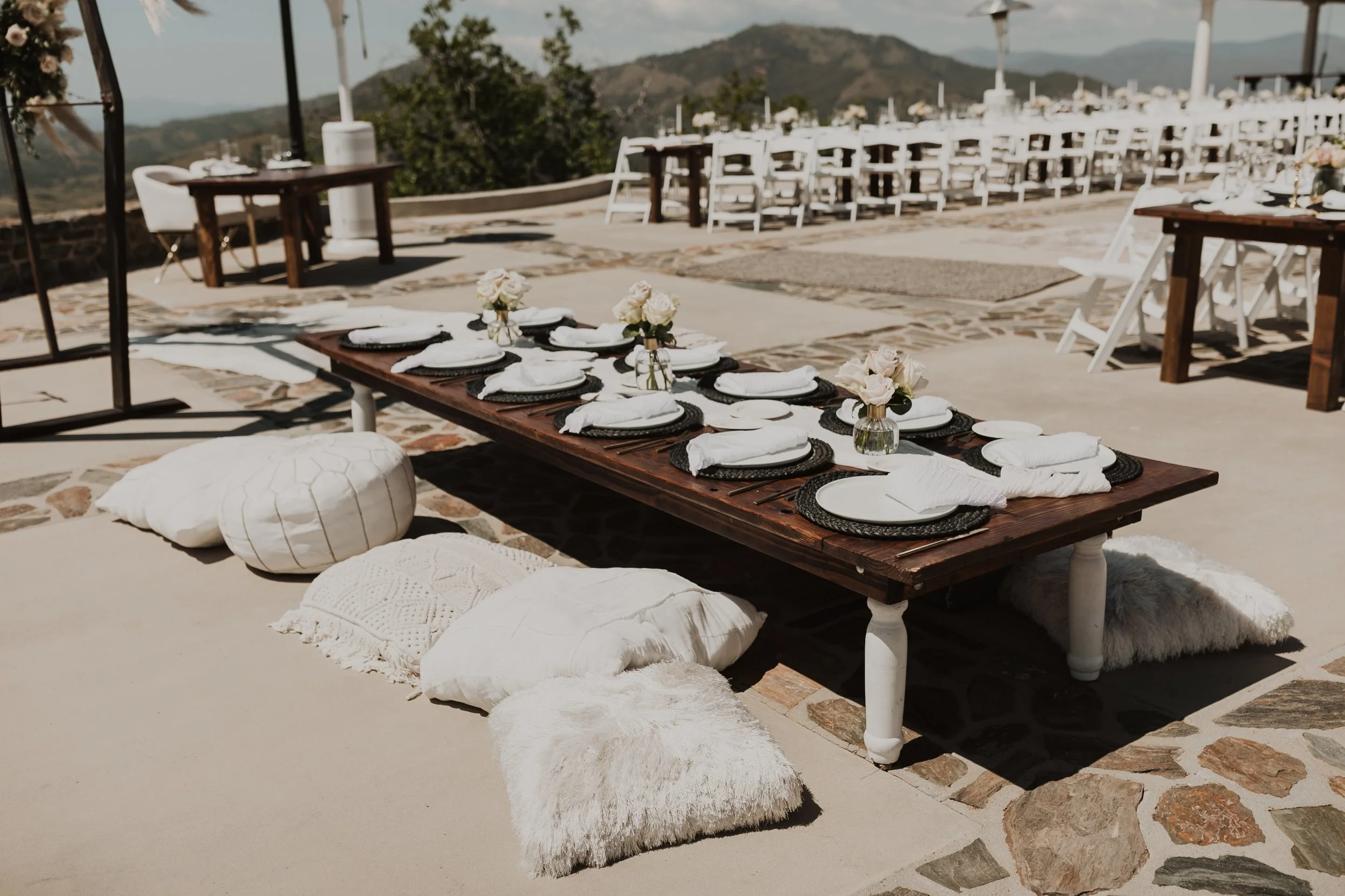 The Moutain Peak Patio & Home is located at 3600 elevation, the highest point of the ranch, with 360 degree breathtaking views. Let us transform our venue into your vision for your special event. Available for bookings Fall 2026.